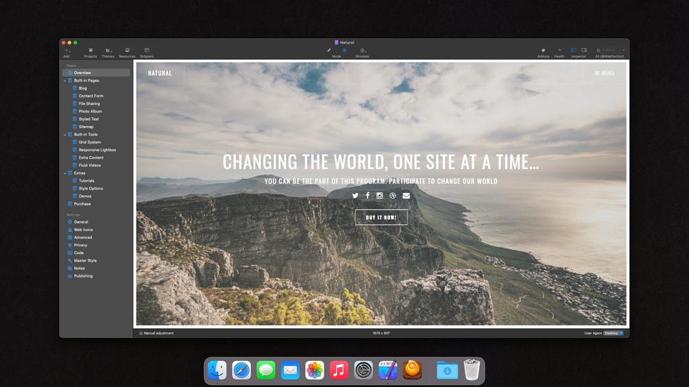 Natural centers around photography, providing an elegantly designed, visual space for the display of full width images items and slideshows. The structure allows for the promotion of images, whilst maintaining a refined style for more conservative appearances.